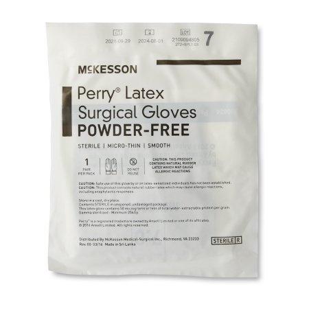 Surgical Glove McKesson Perry® Size 7 Sterile Latex Standard Cuff Length Smooth Brown Not Chemo Approved
