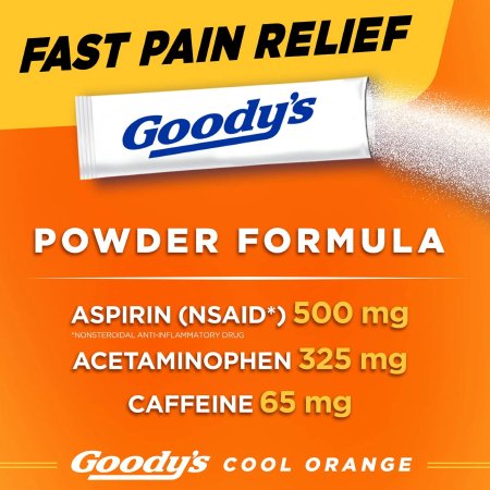 Pain Relief Goody’s® Extra Strength 325 mg – 500 mg – 65 mg Strength Acetaminophen / Aspirin / Caffeine Powder 24 per Box