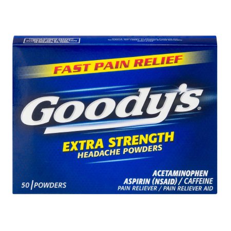 Pain Relief Goody’s® Extra Strength 260 mg – 520 mg – 32.5 mg Strength Acetaminophen / Aspirin / Caffeine Powder 50 per Box