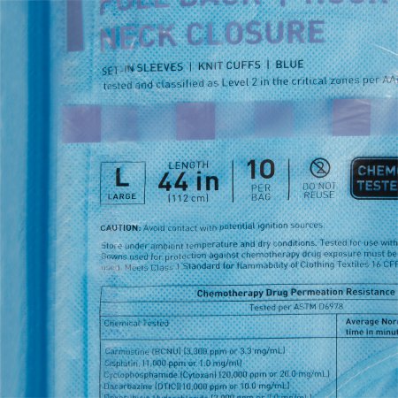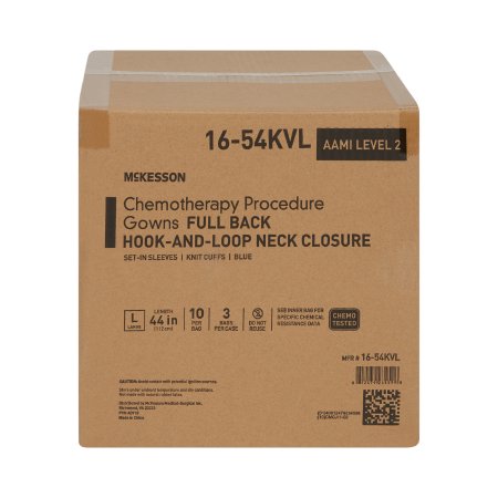 Chemotherapy Procedure Gown McKesson Large Blue NonSterile AAMI Level 2 / ASTM D6978 Disposable