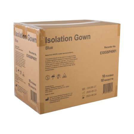 GOWN ISO PE COATED SPUN BOND BLU LGE 40GSM (10/BG 10BG/CS)