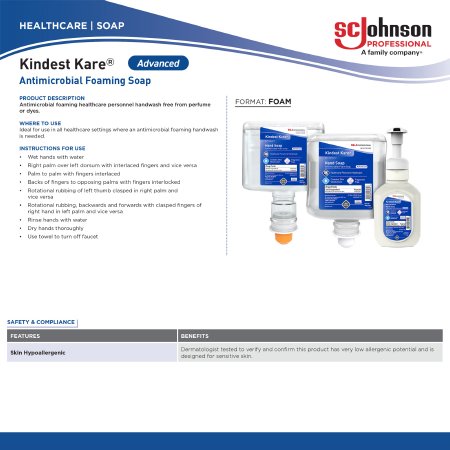 Antimicrobial Soap Kindest Kare® Advanced Foaming 1 000 mL Dispenser Refill Bottle Unscented