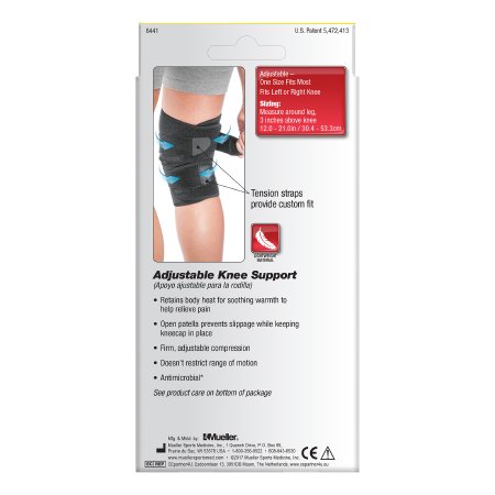 Knee Support Mueller® Sport Care® One Size Fits Most Hook and Loop Strap Closure 12 to 21 Inch Above Knee Circumference Left or Right Knee