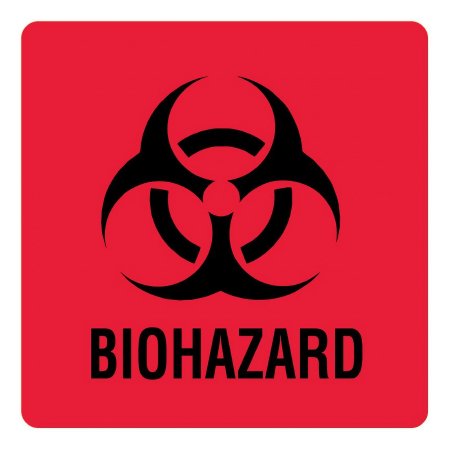 Pre-Printed Label UALâ„¢ Caution Label Red Paper Biohazard / Symbol Black Biohazard 3 X 3 Inch