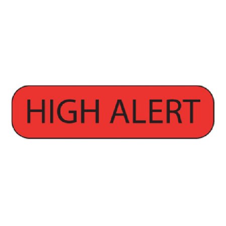Pre-Printed Label MedVision® Caution Label Red Paper High Alert Black Alert Label 3/8 X 1-7/16 Inch