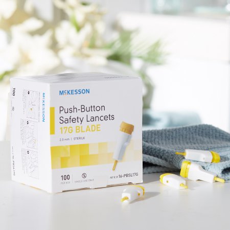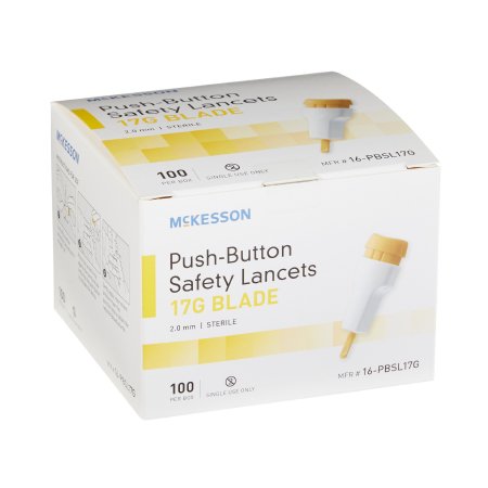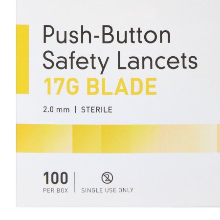 LANCET PUSH-BUTTON SFTY 17G BLADE (100/BX 20BX/CS)