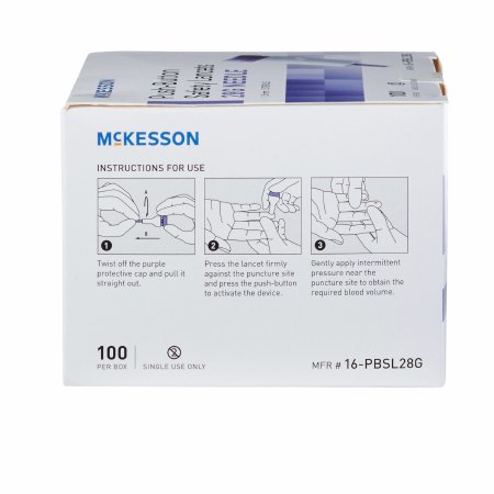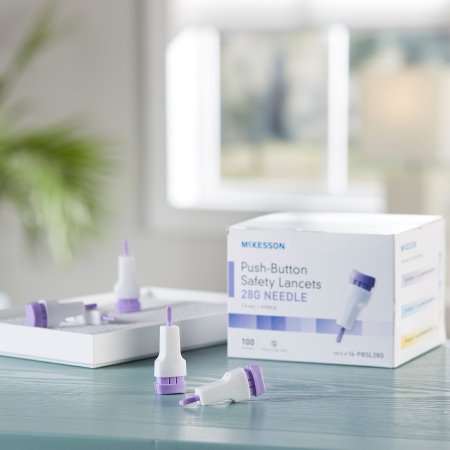 Safety Lancet McKesson 28 Gauge Retractable Push Button Activation Finger