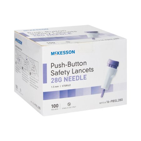 LANCET PUSH-BUTTON SFTY 28G NDL (100/BX 20BX/CS)