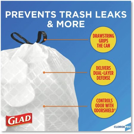 Trash Bag Glad® 13 gal. White Plastic 0.72 mil 12 X 24 Inch Dispenser Box