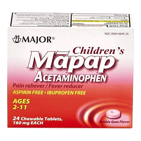 Children’s Pain Relief / Fever Reducer Mapap® 160 mg Strength Acetaminophen Chewable Tablet 24 per Box