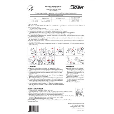 Particulate Respirator / Surgical Mask Honeywell DC365 Medical N95 ASTM F1862 Elastic Strap One Size Fits Most