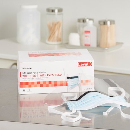 Surgical Mask with Eye Shield McKesson Anti-fog ASTM Level 3 Tie Closure One Size Fits Most