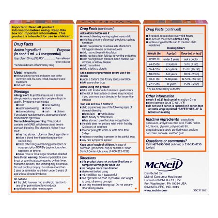 Children’s Pain Relief Motrin 100 mg / 5 mL Strength Ibuprofen Oral Suspension