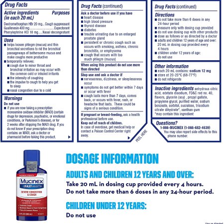 Cold and Cough Relief Mucinex® Fast-Maxâ„¢ 20 mg – 400 mg – 10 mg / 5 mL Strength Liquid 6 oz.