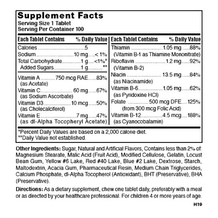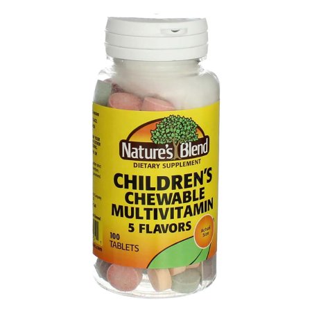 Pediatric Multivitamin Supplement Nature’s Blend Vitamin / Minerals 100 mg Strength Chewable Tablet 100 per Bottle Assorted Fruit Flavor