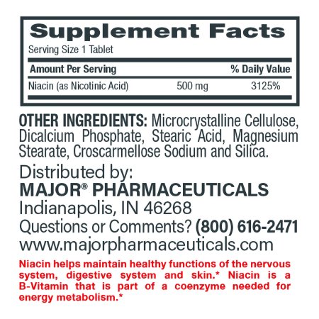 Dietary Supplement Major® Niacin 500 mg Strength Tablet 100 per Bottle