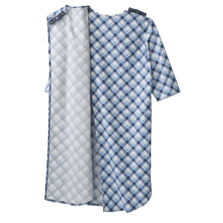 Patient Exam Gown Silverts® X-Large Diagonal Blue Plaid Reusable