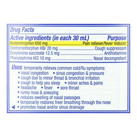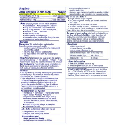 Cold and Cough Relief NyQuil® 650 mg – 20 mg – 12.5 mg- 10 mg / 30 mL Strength Liquid 12 oz.