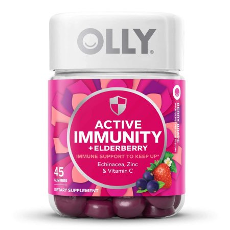 Dietary Supplement OLLY® Active Immunity+Elderberry Echinacea / Black Elderberry Extract / Zinc / Vitamin C 40 mg – 65 mg – 5 mg – 180 mg Strength Gummy 45 per Bottle Berry Brave Flavor