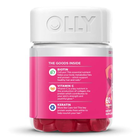 Dietary Supplement OLLY® Undeniable Beauty® Biotin / Vitamin C / Vitamin E / Keratin 2 500 mcg – 15 mg – 7.5 mg – 50 mg Strength Gummy 60 per Bottle Grapefruit Glam Flavor