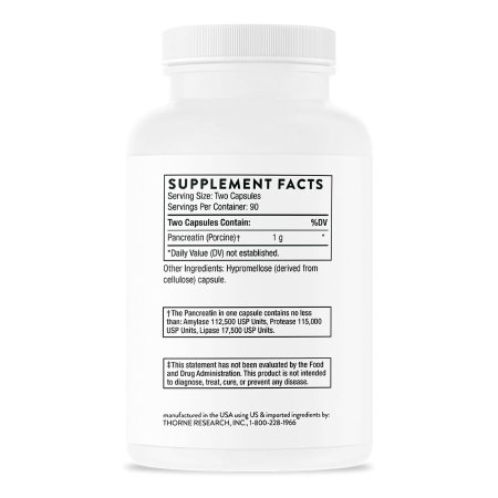 Dietary Supplement THORNE® Pancreatic Enzymes Pancreatin (Porcine) 1 Gram Strength Capsule 180 Per Bottle
