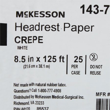 Headrest Paper McKesson 8-1/2 Inch Width 125 Foot Length White Crepe