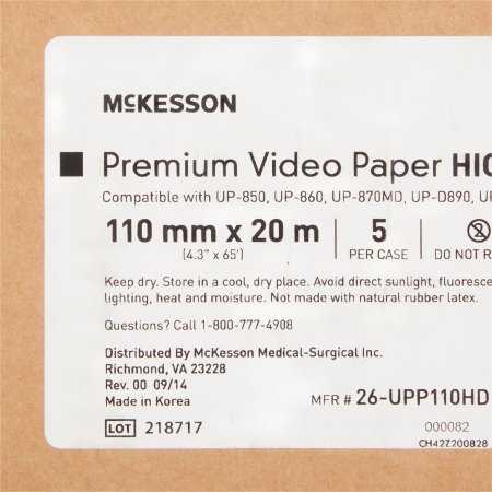 Ultrasound Video Paper McKesson Roll Black and White High Density Without Grid