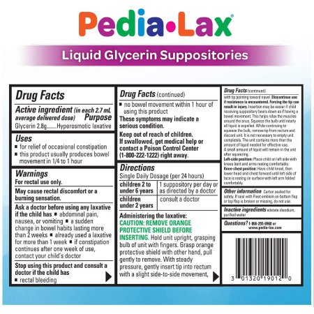 Laxative Pedia-Lax® Suppository 6 per Box 2.8 Gram Strength Glycerin