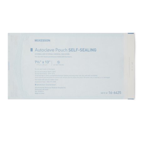 Sterilization Pouch McKesson Ethylene Oxide (EO) Gas / Steam 7-1/2 X 13 Inch Transparent Blue / White Self Seal Paper / Film