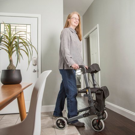 4 Wheel Rollator HealthSmart® Gateway Titanium Gray Adjustable Height / Lightweight / Folding Aluminum Frame