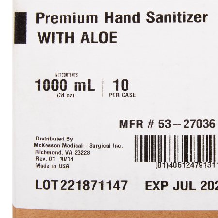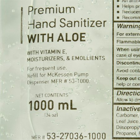 Hand Sanitizer with Aloe McKesson 1 000 mL Ethyl Alcohol Gel Dispenser Refill Bag