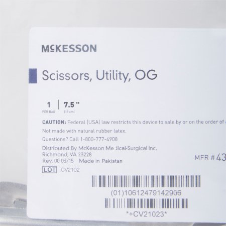 Utility Scissors McKesson 7-1/2 Inch Length Office Grade Stainless Steel Finger Ring Handle
