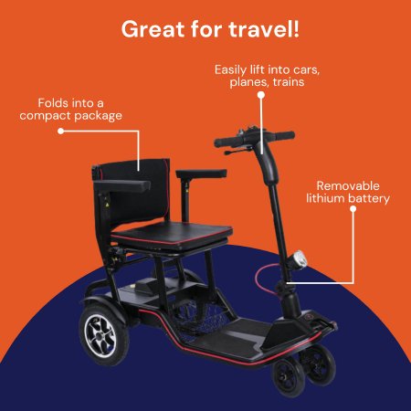 4 Wheel Electric Scooter Feather 265 lbs. Weight Capacity Black / Red
