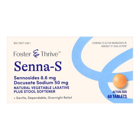 Stool Softener Foster & Thriveâ„¢ Tablet 60 per Bottle 50 mg – 8.6 mg Strength Docusate Sodium / Calcium Sennosides