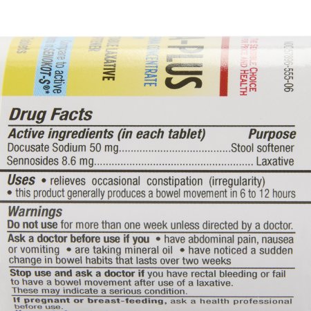 Stool Softener / Laxative Health Star® Tablet 60 per Bottle 50 mg – 8.6 mg Strength Docusate Sodium / Sennosides