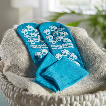 Slipper Socks McKesson Paw Prints® Unisex Adult One Size Fits Most Single Tread Single Patient Use Teal