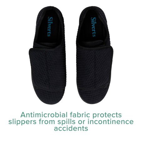 Slippers Silverts® Male Adult Size 7 / 2X-Wide Hard Sole Single Patient Use Black