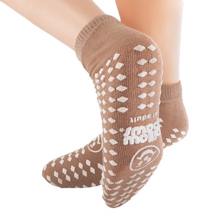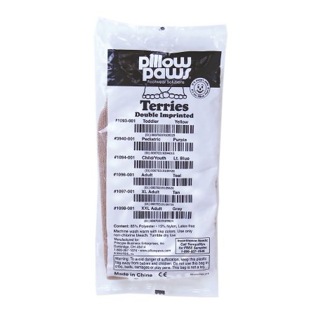Slipper Socks Pillow Paws® 360° Imprint Unisex Adult X-Large All Around Tread Single Patient Use Tan