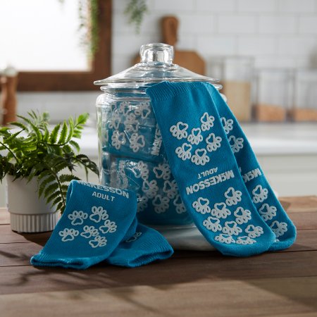 Slipper Socks McKesson Terriesâ„¢ Unisex Adult One Size Fits Most Double Tread Single Patient Use Teal