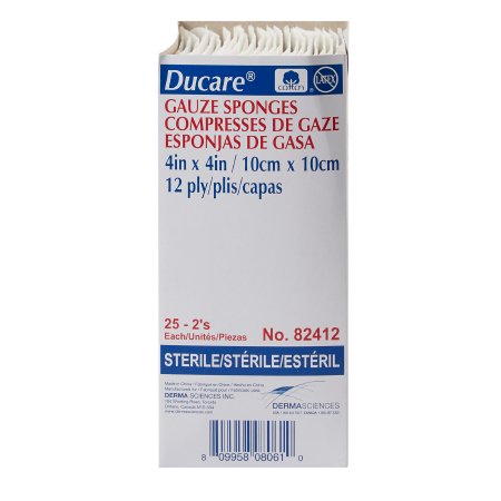 Gauze Sponge Ducare 4 X 4 Inch 12-Ply Sterile 2 per Pack