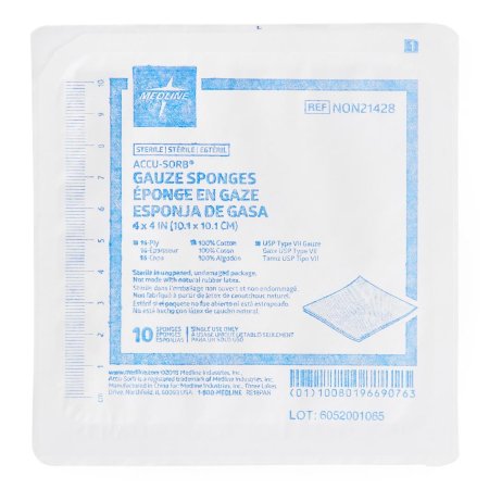 Gauze Sponge Medline 4 X 4 Inch 16-Ply Sterile 10 per Tray