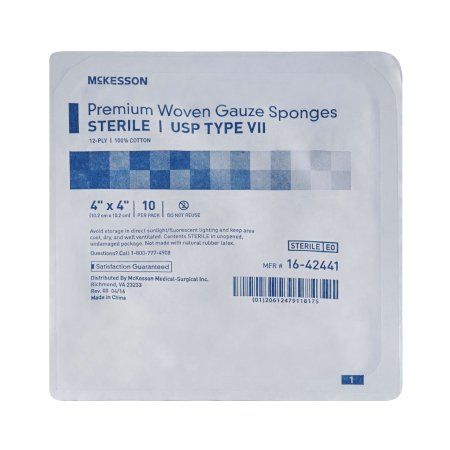 Gauze Sponge McKesson 4 X 4 Inch 12-Ply Sterile 10 per Tray