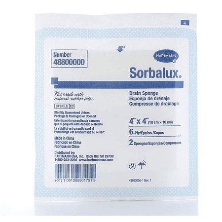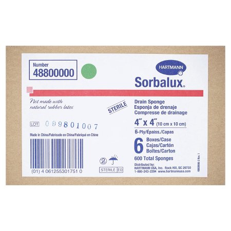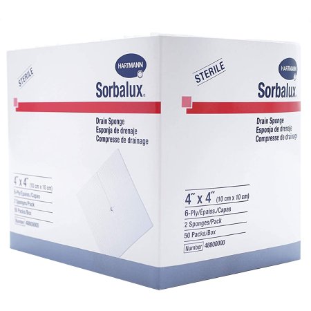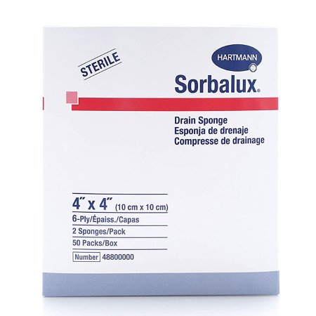 Drain Sponge Sorbalux® 4 x 4 inch 6-Ply Sterile 2 per Pack