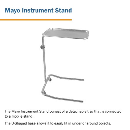 Mayo Instrument Stand McKesson Hand Operated Single Post U-Shaped Base Small Tray