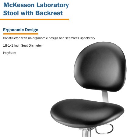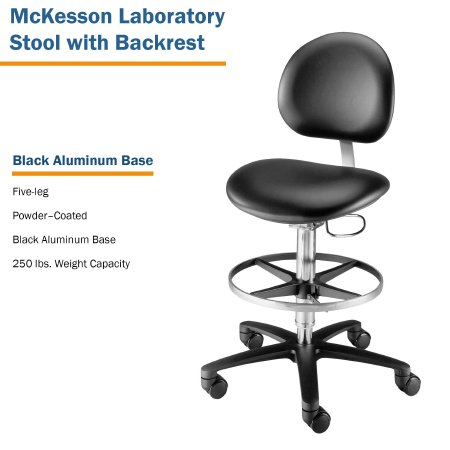 Laboratory Stool McKesson Backrest Pneumatic Height Adjustment 5 Casters Black