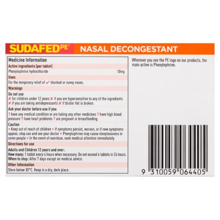 Nasal Decongestant 10 mg Strength Tablet 18 per Bottle