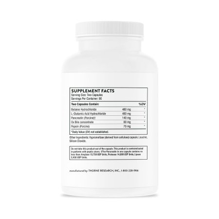 Dietary Supplement THORNE® Advanced Digestive Enzymes Glutamic Acid / Pancreatin / Bile Salts / Betaine Hydrochloride / Pepsin 480 mg – 140 mg – 80 mg – 480 mg – 70 mg Strength Capsule 180 per Bottle