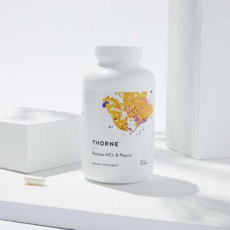 Dietary Supplement THORNE® Betaine HCL / Pepsin Betaine Hydrochloride / Pepsin (Porcine) 1 g – 47 mg Strength Capsule 225 per Bottle