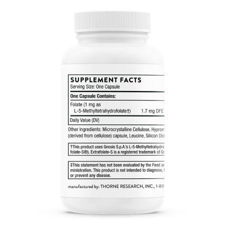 Dietary Supplement THORNE® 5-MTHF Folate 1 mg Strength Capsule 60 per Bottle