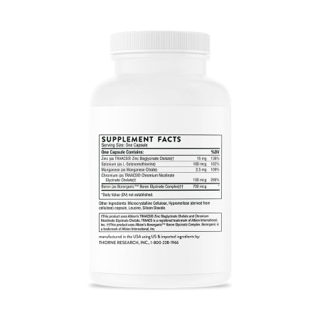 Dietary Supplement THORNE® Trace Minerals Zinc / Selenium / Manganese / Chromium / Boron 15 mg – 100 mcg – 2.5 mg – 100 mcg – 700 mcg Strength Capsule 90 per Bottle